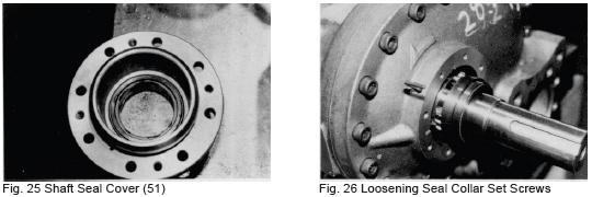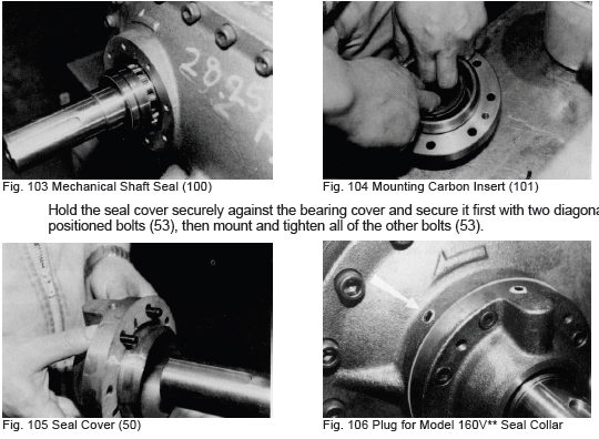 h) Model 160V has holes for the seal collar set screws in the bearing cover. These holes must be plugged with blind plugs after mounting the seal cover (ref. Fig. 106).