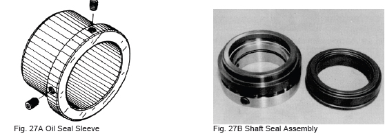 b) Carefully inspect the seal contact surface on the stepped portion of the shaft for flaws and scratches before assembling.