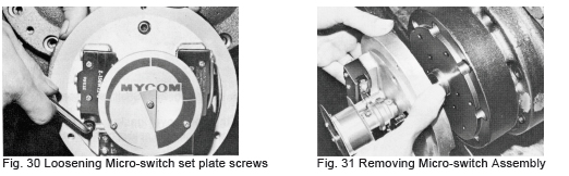 b) Check the actuation of the contact points of the micro-switch components using a tester (for details contact the Electric Department of Mycom).