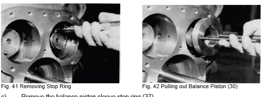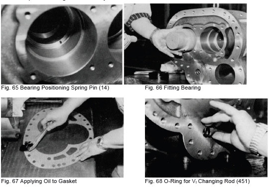 a) Fit the O-ring (65) on the unloader piston (64) and cover the cap seal (66). Mount the piston in the unloader cylinder (60) from the beveled (rotor) side.