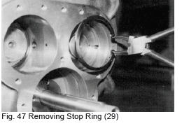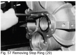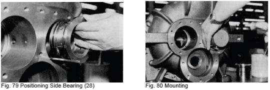 a) Fit the ball bearing (78) on the cylinder cam shaft. When pushing the bearing onto the shaft, apply pressure on the inner race of the bearing only, otherwise the bearing may be damaged. Push the bearing onto the stepped portion of the cylinder cam and fix with the stop ring (79).
