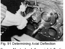 Since the dimension at “A” shown in Fig. 90B is too large because the thrust adjusting washer is too thick, the face of the washer must be ground down by the amount of the difference between the measured value and the specified value. To accomplish this, a high precision surface grind must be used to ensure that both sides of the washer are parallel. After machining, measure the thickness around the entire circumference of the washer using a micrometer. This method can be used for all models.