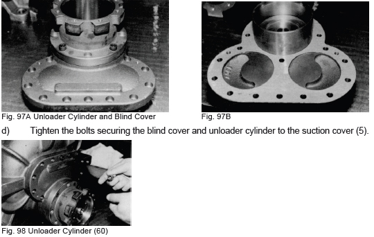 d) Tighten the bolts securing the blind cover and unloader cylinder to the suction cover (5).