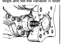 g) Set the capacity control mechanism to the full load position. If the needle pointer of the capacity control indicator indicates the specified porti range on the dial, proper adjustment is confirmed. An amplitude is provided between the M and H graduations on the indicator dial because the M and H positions shift depending on whether the compressor is a 160SML, 200 SML or 250 SML model as well as on the rotor length, of which there are nine. Since the graduations on the dial are common to all models, an amplitude is provided. When the Vi changing rod is adjusted the correct number of turns and the needle pointer position is within the specified range, adjustment can be considered correct.