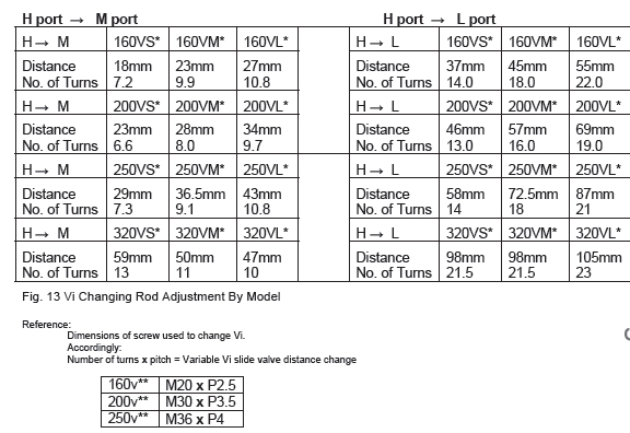 d) Determine the number of turns needed on the Vi changing rod for the particular compressor as given in Fig. 13.