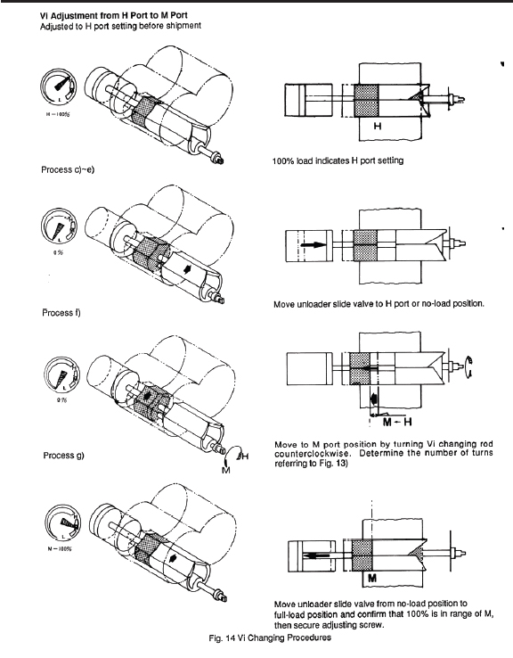1. The Vi should be changed only when the compressor is stopped and the capacity control mechanism is set to the no-load position.